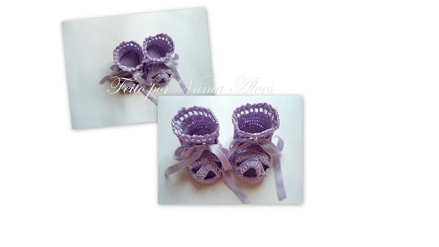 Não sou muito fã de fazer coisas pequenas,mas como terei minha primeira sobrinha resolvi arriscar a fazer um sapatinho.Fiz um todo fechado na cor rosa,mas ficou tão pequeno que serve somente para bonecas . Achei esse modelinho bem mimoso e fácil.Fiz bem rápido e me surpreendi,pois é muito gostoso de fazer e fica super delicado. Usei anne lilás e susi para o acabamento.Gosto de misturar fios diferentes e o fio susi tem um brilho que adoro . Os lacinhos fiz com fita de cetim na mesma cor . Claro que agora farei outros e logo mostro por aqui .Pena que meu tempo está tão curto devido as encomendas,mas sempre deixo um tempo reservado para os projetos pessoais.Desejo um ótimo fim de semana e agradeço os comentários. Bjos!